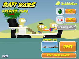 raft wars is a fun game for people that are 5 and up. I reckon raft wars is great game for people who are good at estimating because you have to shoot balls and you are not aloud to look at the people that you are versing for long thats why if your good at estimating you can shoot the guys with out missing. One of my favorite things about this game is when the big boy is sooting the baby on your raft puts epic glasses andother cool things thats the best thing about the baby. the rafts you get look so epic here is some pictures of the I recommend that every one should play this game by the way this is a anther not doppler game. I rate this game 7.5/10